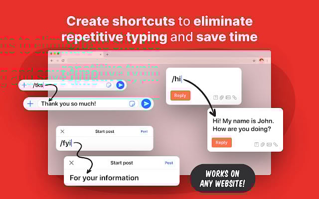 Text Blaze is a Chrome extension that helps you quickly use snippets of frequently used text.